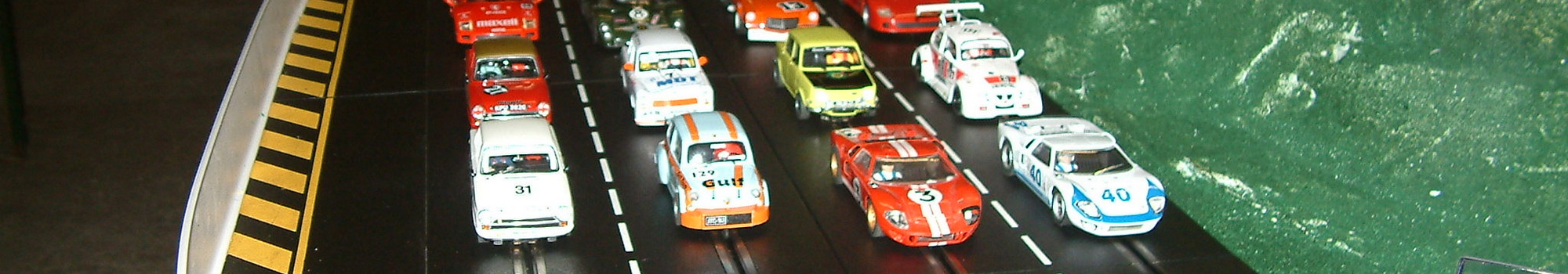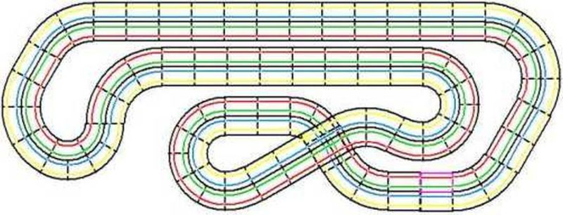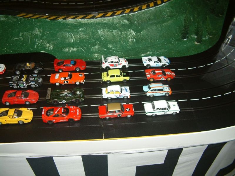 Im Jahr 2008 kauften wir in Linz eine kleine gebrauchte 6-spurige Evolution Clubbahn mit starken Trafos. Aus dieser Bahn bauten wir nach einigen Zukäufen eine 4-spurige Bahn. Mit einer Spurlänge von 25 Metern war sie ideal für flotte Rennen für flotte Männer und sportliche Frauen. Mit einer Aufbauhöhe von 75 cm war sie von allen Seiten gut zugänglich. Als Zweileiterbahn konnte sie mit den Features der Uni Bahn, wie 360° turnarounds, 4 Fahrzeuge auf zwei Spuren, dem historischen Flair der klassischen Carrerabahn natürlich nicht mithalten. Aber dafür haben wir ja unse große UNI Bahn.