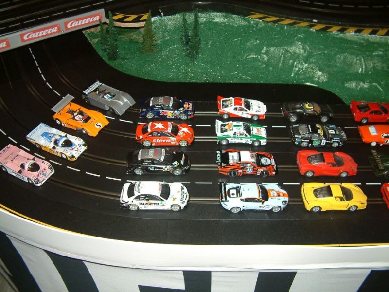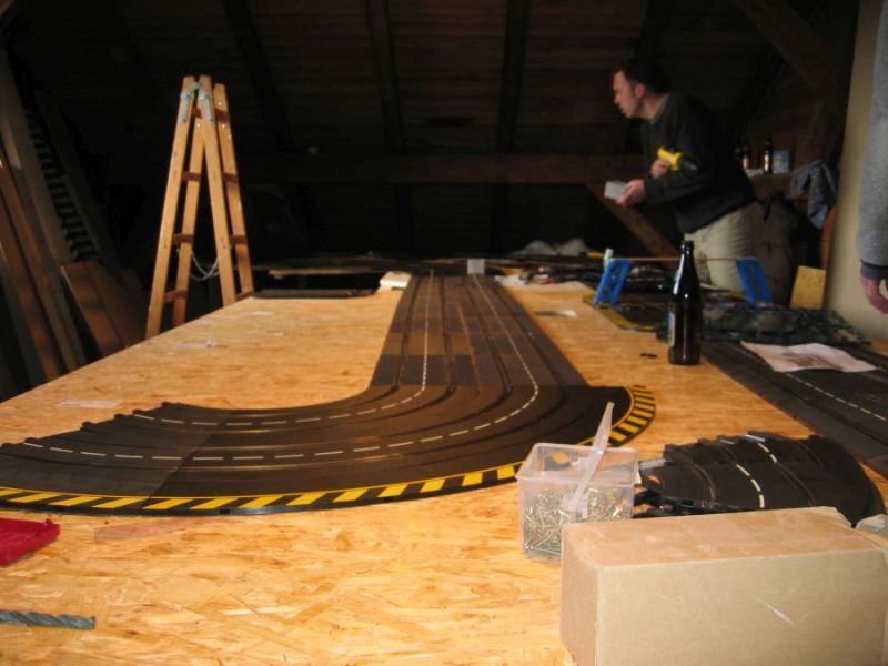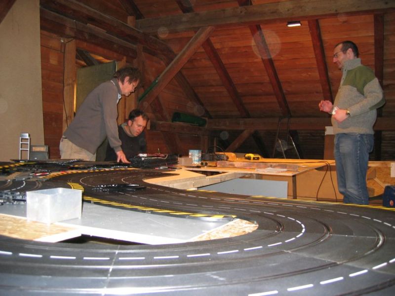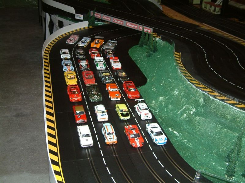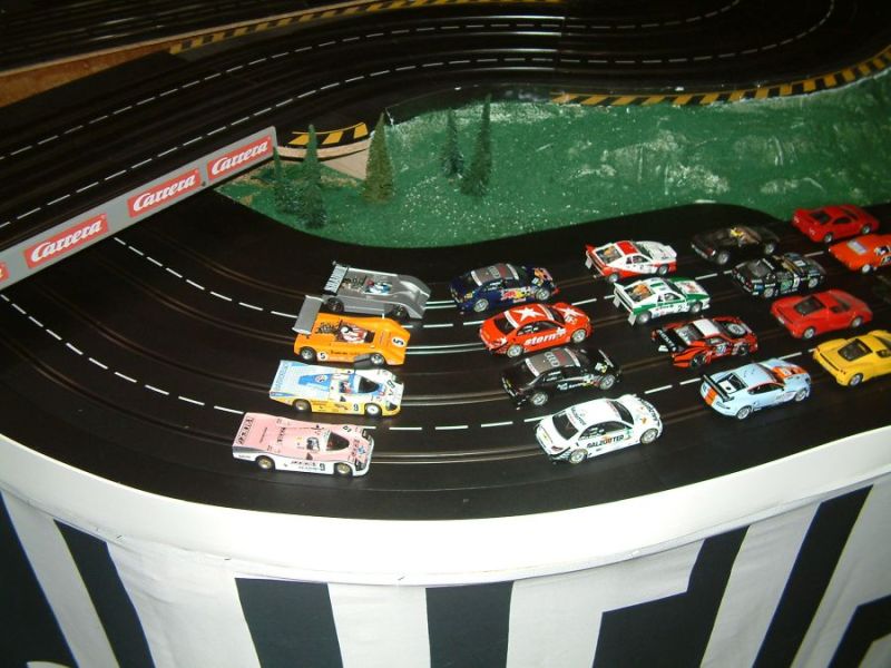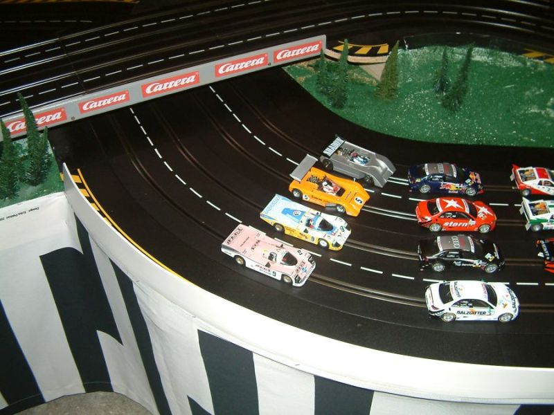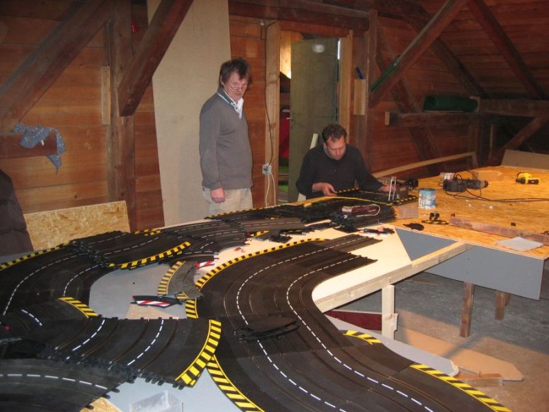 Wie wahrscheinlich alle Slotter hatten wir natürlich auch immer eine Holzbahn im Hinterkopf. Anläßlich des 60igsten Geburtstages von Peter kam dann die große Überraschung, plötzlich war eine 3 spurige Holzbahn, gesponsert von Diethard und den Carrerafreunden, da. Jetzt war die Frage wohin damit? Aber gegen eine Holzbahn konnte die EVO-Bahn natürlich nicht bestehen. Also wurde die EVO-Bahn verkauft und die Holzbahn kam rein.