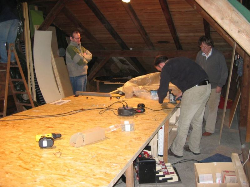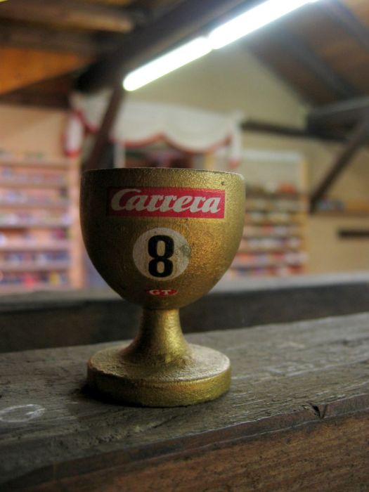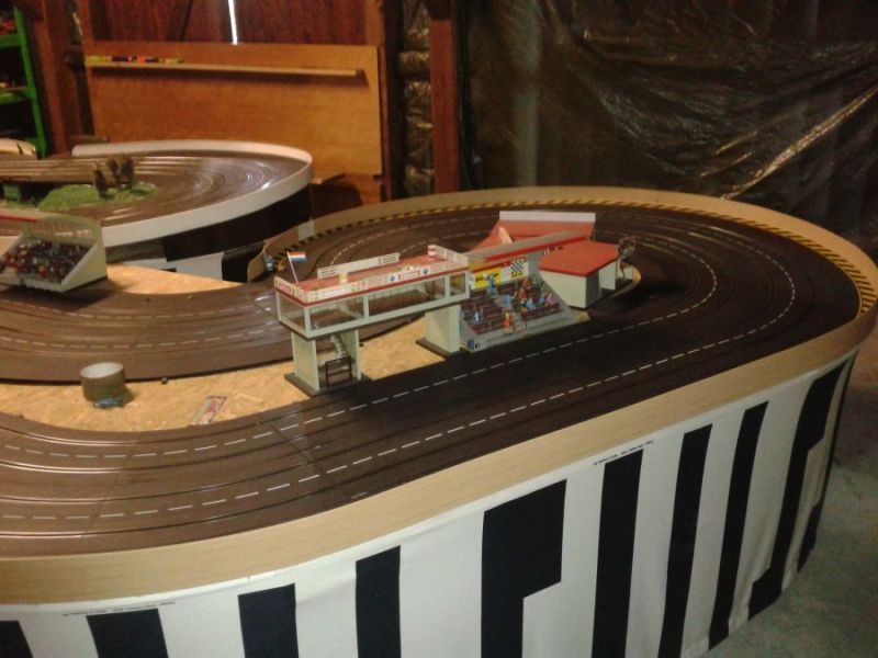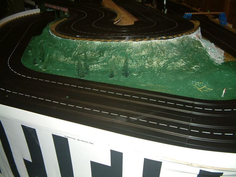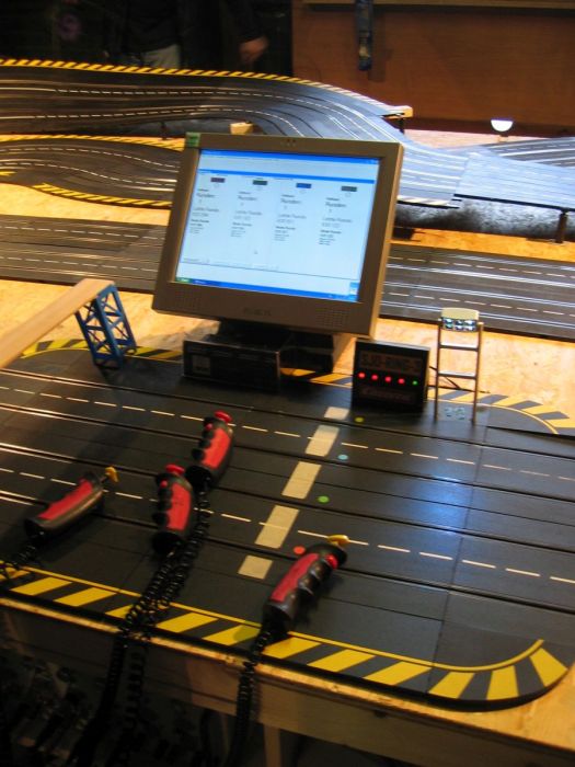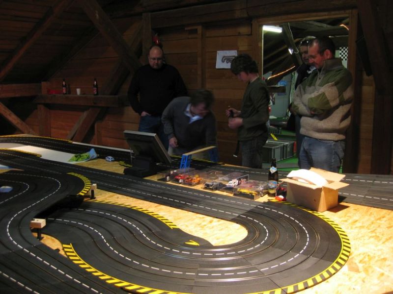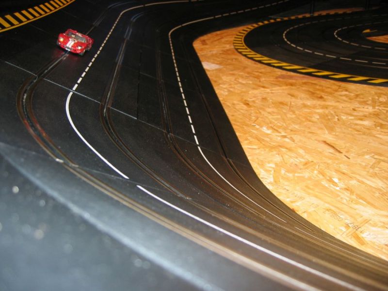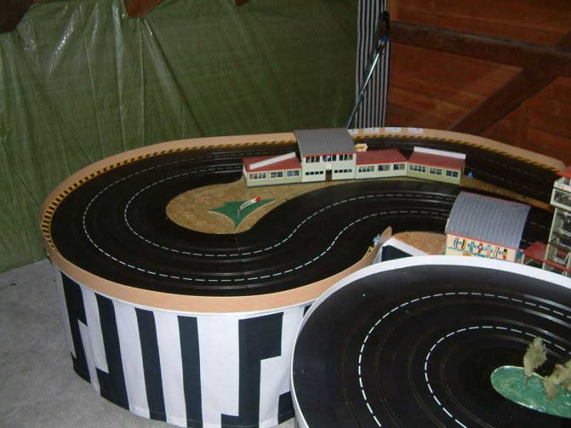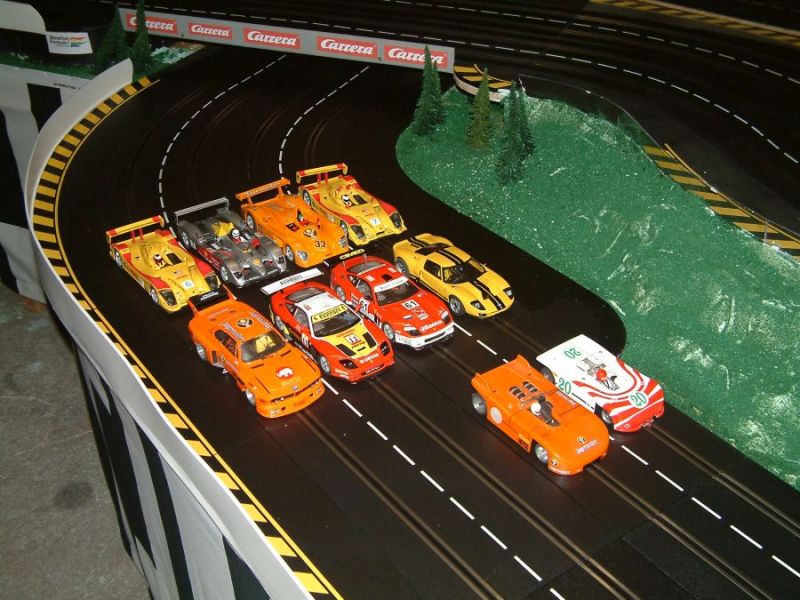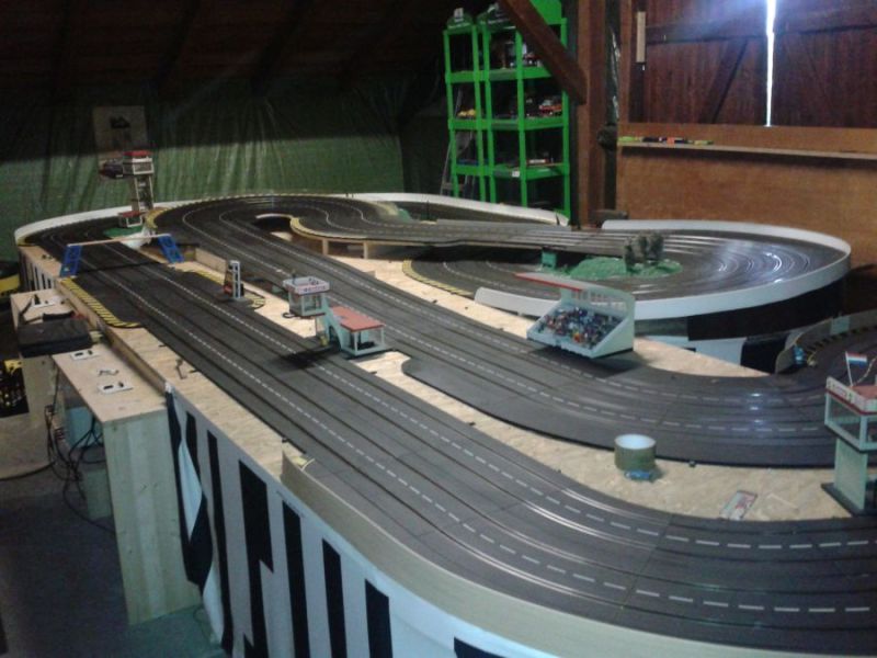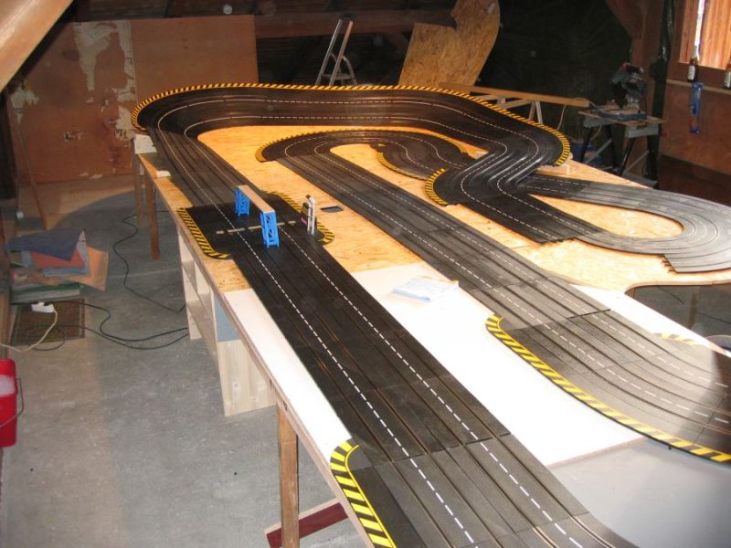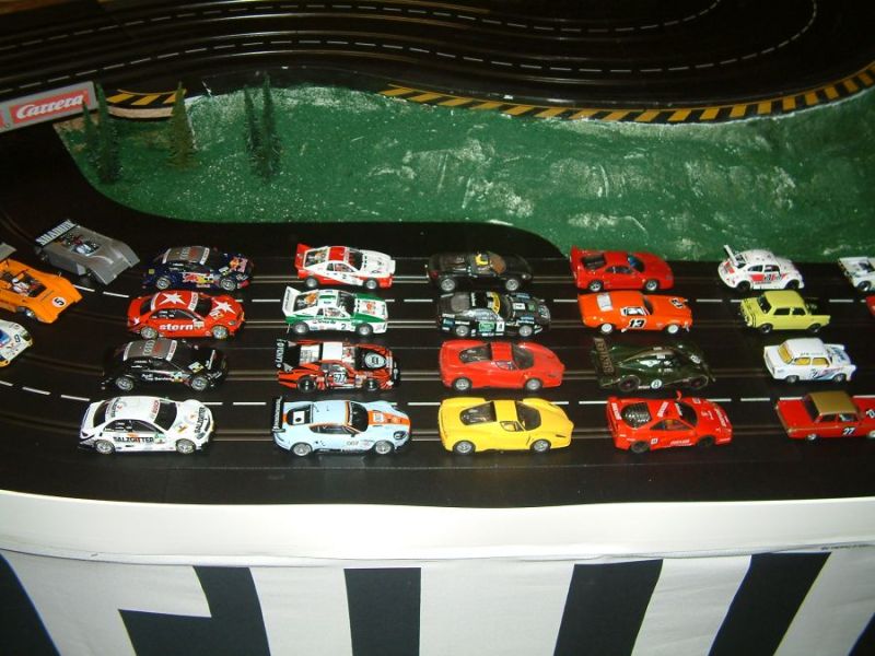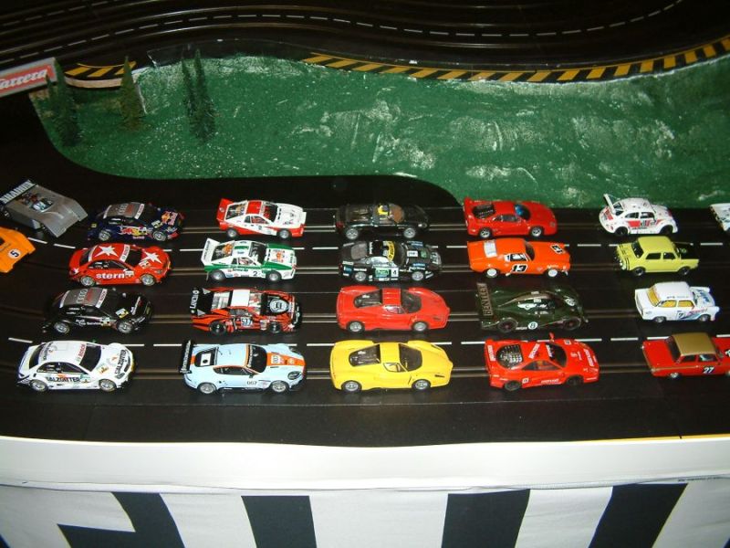 Wie wahrscheinlich alle Slotter hatten wir natürlich auch immer eine Holzbahn im Hinterkopf. Anläßlich des 60igsten Geburtstages von Peter kam dann die große Überraschung, plötzlich war eine 3 spurige Holzbahn, gesponsert von Diethard und den Carrerafreunden, da. Jetzt war die Frage wohin damit? Aber gegen eine Holzbahn konnte die EVO-Bahn natürlich nicht bestehen. Also wurde die EVO-Bahn verkauft und die Holzbahn kam rein.